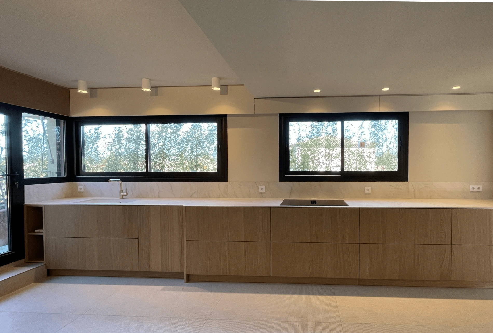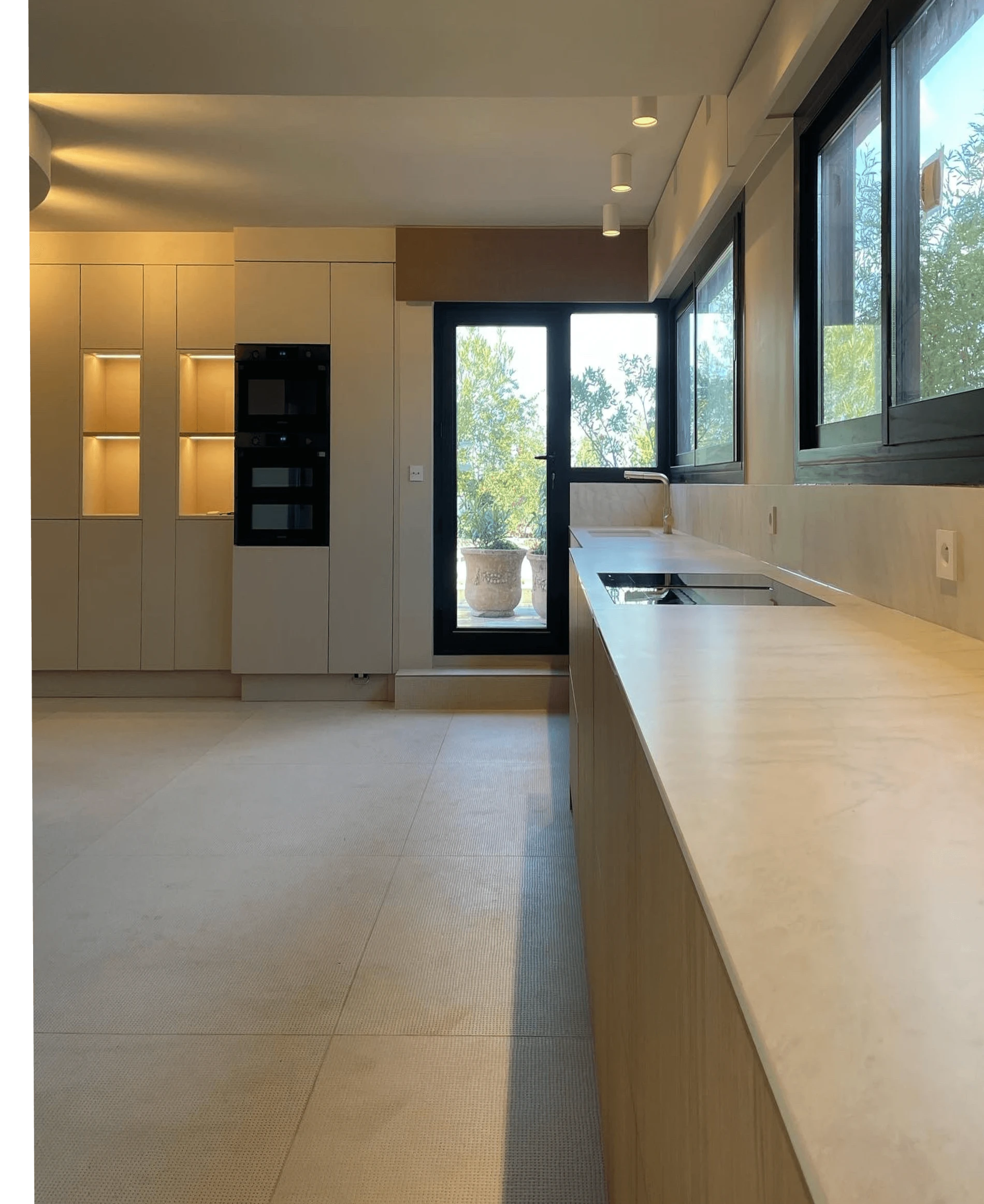 Le résultat est un espace où chaque détail compte, où la lumière et les matières nobles se répondent, offrant une cuisine fonctionnelle, raffinée et parfaitement intégrée à son environnement.