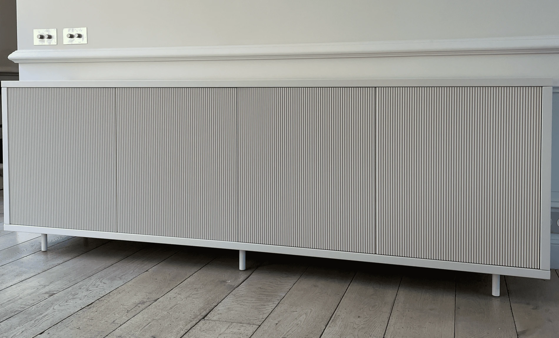 Un mobilier pensé comme une pièce d’architecture intérieure : façades striées, contours lisses, lignes épurées. Le tout sublimé par une finition laquée Disenio, en parfaite harmonie avec l’espace de vie.